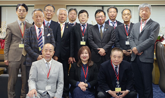 令和7年12月8日に、一般社団法人滋賀県生活衛生協会の玄田宗七理事長ならびに同協会役員である滋賀県各生活衛生同業組合理事長10名他が、東京・霞が関の厚生労働省にて、上野賢一郎厚生労働大臣を表敬訪問しました。