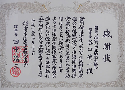 滋賀県旅館ホテル生活衛生同業組合 元理事長 - ◎厚生労働大臣表彰