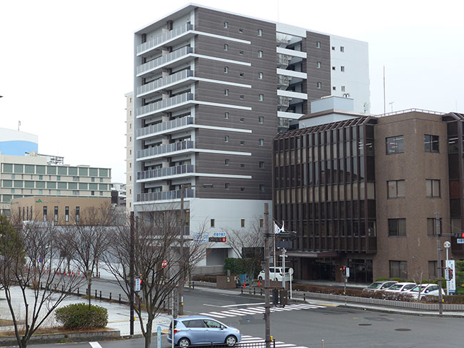 この度、マンションビルの名称が「レ・ジェイド大津LUXE(ラグゼ)」に決まりました。日本エスコンによりますと、マンション各戸の一般への分譲予約(3階から10階までの32室)を本年(平成30年)11月から始めており、12月中旬現在で約半数が予約済みとのことです。建設工事につきましては今年の台風や建設部品のひっ迫等の想定外の事情で、当初よりひと月ほど計画が遅れましたが、この10月に着工しており、来年の11月28日が竣工予定となっております。また、マンションビル1階部分の路面側テナント(1店舗のみ)の入居募集が近々始まります。お問い合わせ等は下記まで。