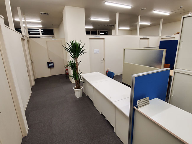 事務所に御用の方は、建物正面の右側通路から南側(裏口)に廻り、
