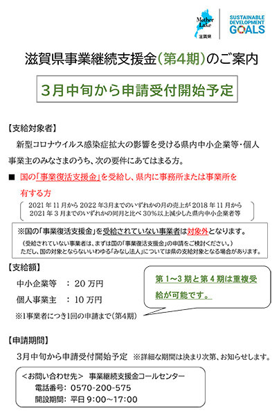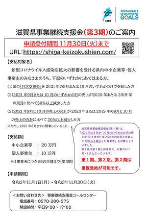 ●賃金引き上げのための助成金制度のお問い合わせは、滋賀労働局 雇用環境・均等室 TEL077-523-1190 まで。