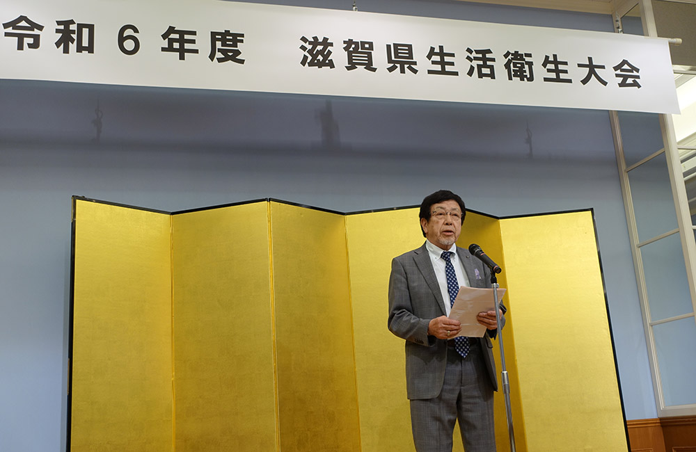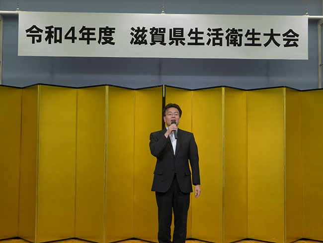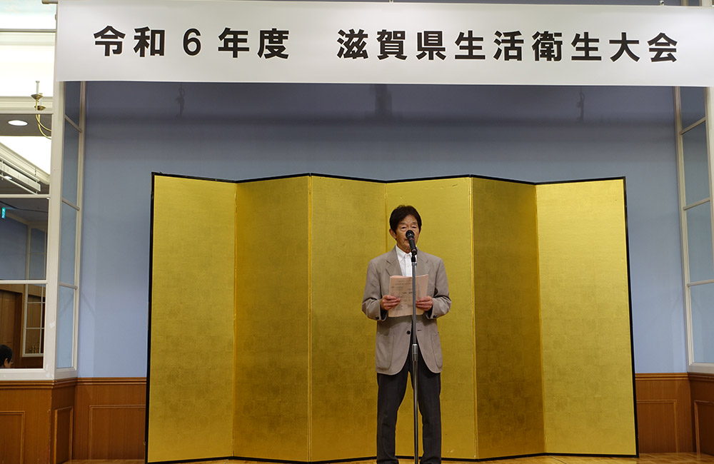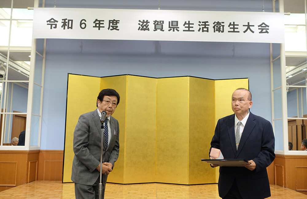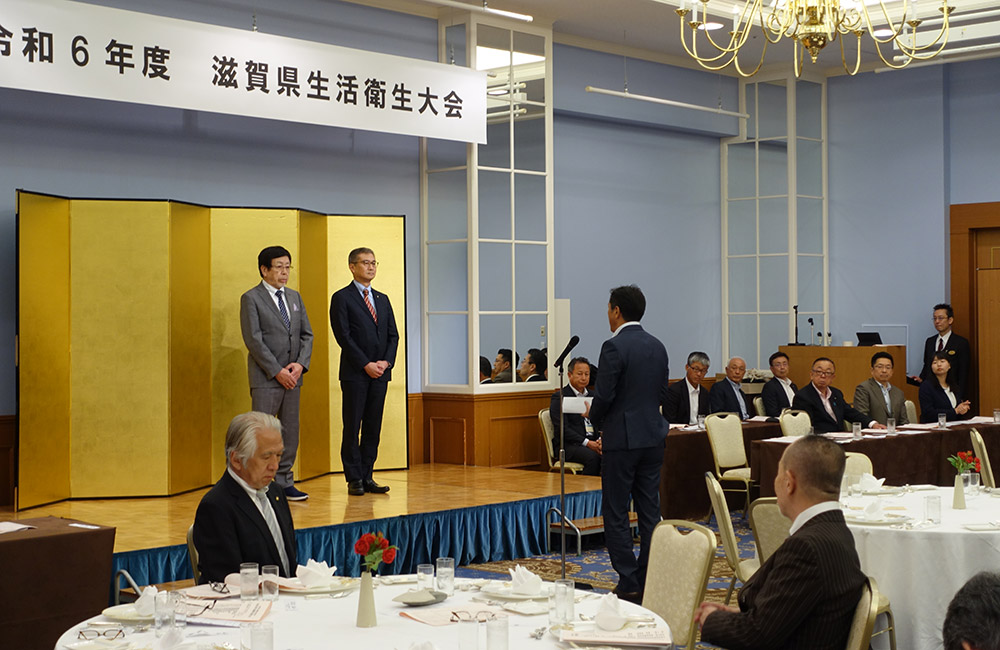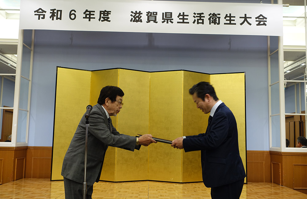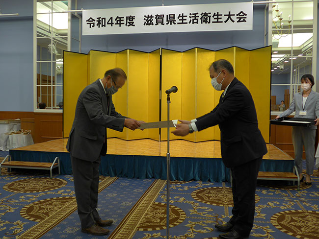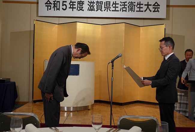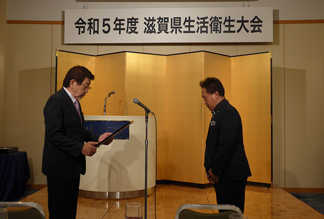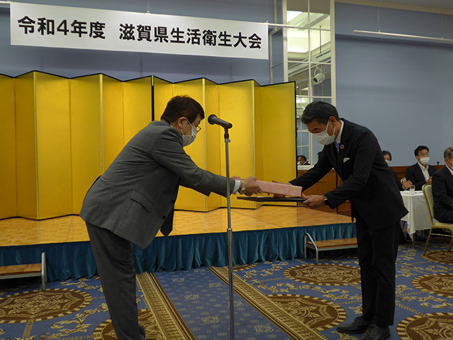 大会に先立ち、生活衛生功労者に対する滋賀県知事表彰ならびに(一社)滋賀県生活衛生協会理事長表彰が行われ、16名(別記)の方々が受賞されました。
