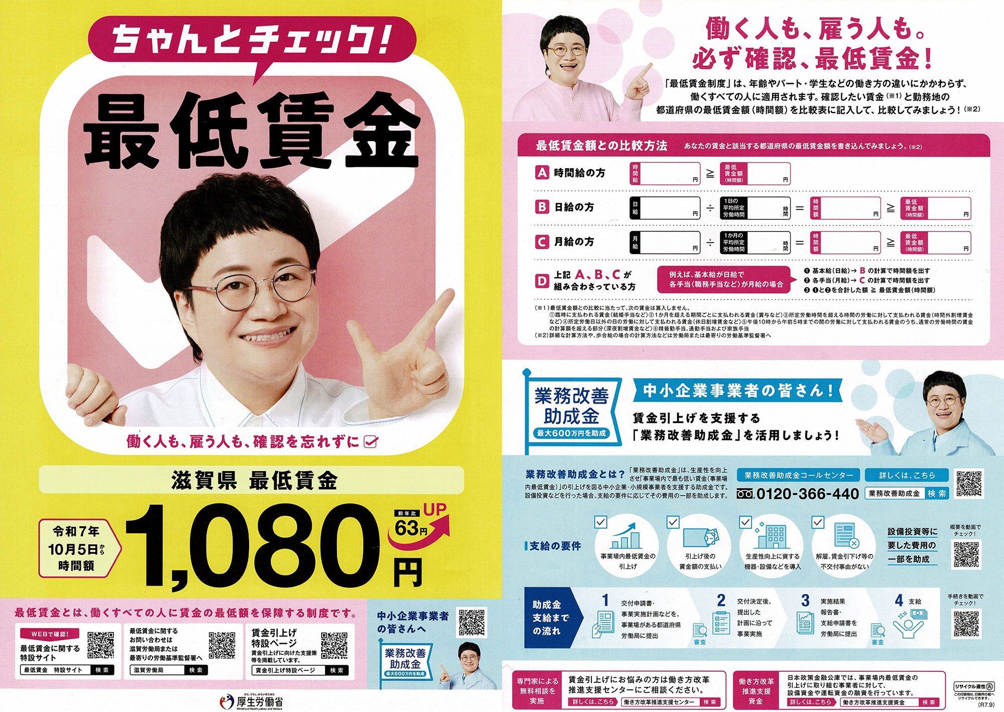 滋賀県最低賃金は、常用・パートなど雇用形態を問わず、県内の事業所に雇用される全ての労働者に適用されます。最低賃金は、賃金の最低額を保障するとともに、労働条件の改善に重要な役割を果たしています。(特定の産業には特定(産業別)最低賃金が定められています。