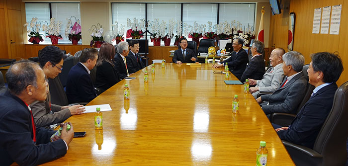 令和7年12月8日に、一般社団法人滋賀県生活衛生協会の玄田宗七理事長ならびに同協会役員である滋賀県各生活衛生同業組合理事長10名他が、東京・霞が関の厚生労働省にて、上野賢一郎厚生労働大臣を表敬訪問しました。